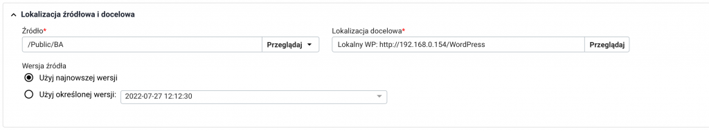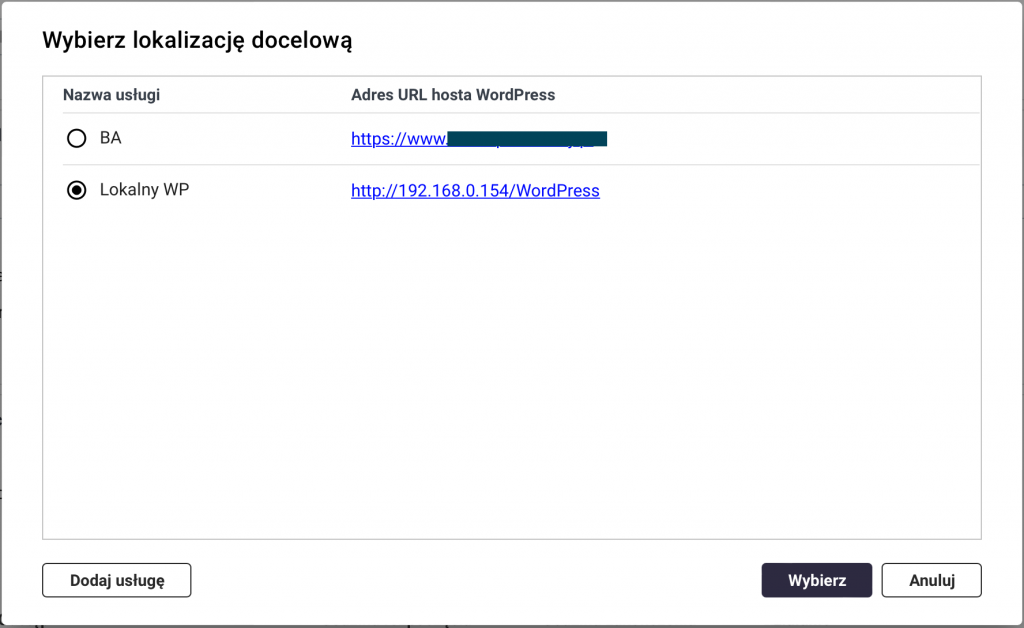 Pamiętajmy, aby z listy wybrać odpowiednią witrynę docelową, do której zostaną przywrócone dane z backupu.