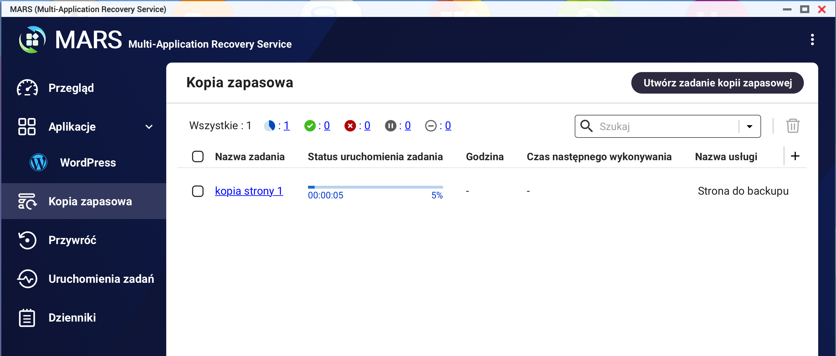 Aplikacja MARS (Multi Application Recovery Service) pozwala na regularne wykonywanie kopii bezpieczeństwa systemu WordPress na QNAP NAS. Kopia może obejmować konfigurację, bazy danych oraz wszystko pliki, co pozwala w razie awarii szybko przywrócić całą witrynę do działania. W tym wpisie przejdziemy przez konfigurację aplikacji.
