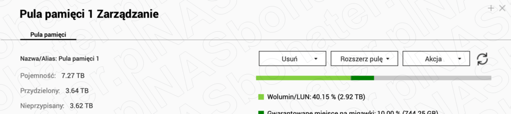 Uwaga – w tym procesie wymieniliśmy dyski na większe co spowodowało zwiększenie pojemności puli pamięci. Nie jest to jednoznaczne z powiększeniem woluminu – ten proces musimy przeprowadzić osobno. Ale o tym napiszę w osobnym artykule.
